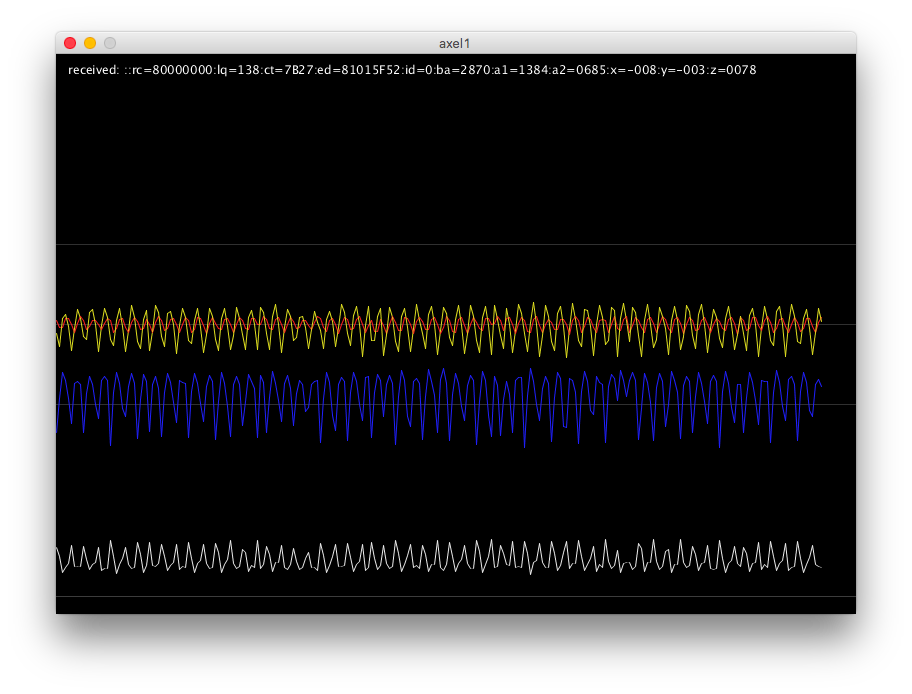 加速度センサで貧乏ゆすりの波形を取ってみたりしてます。深い意味はありません。TWE-Lite2525A(通称ニコニコ)からのデータをProcessingでグラフ化する練習です。